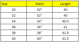 Waist: 30,32,34,36,38,40